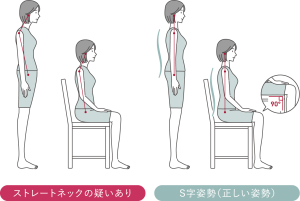 本来、首はゆるやかなカーブを描いて頭の重さを支えていますが、そのカーブが少なくなると、首や肩の筋肉に負荷がかかりやすい状態になるようです。