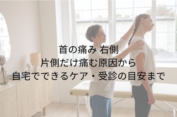 首の痛み 右側でお悩みの方へ。なぜ右側だけ首が痛むのか、筋・筋膜・神経の観点から分かりやすく解説し、自宅でできるストレッチ・生活習慣の改善、さらに「これは整形外科を受診すべき」というサインも紹介します。